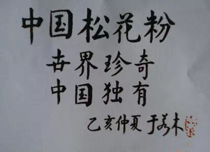 中国著名营养学家、原国家营养学会主席于若木(原国家领导人陈云夫人)曾三次为松花粉题词: